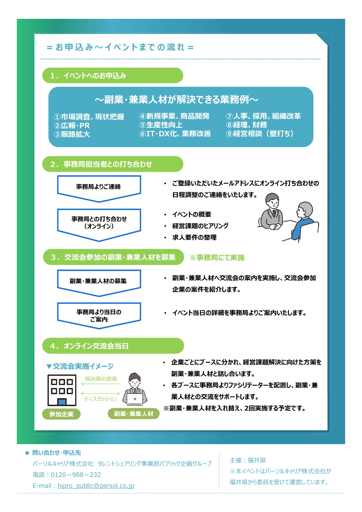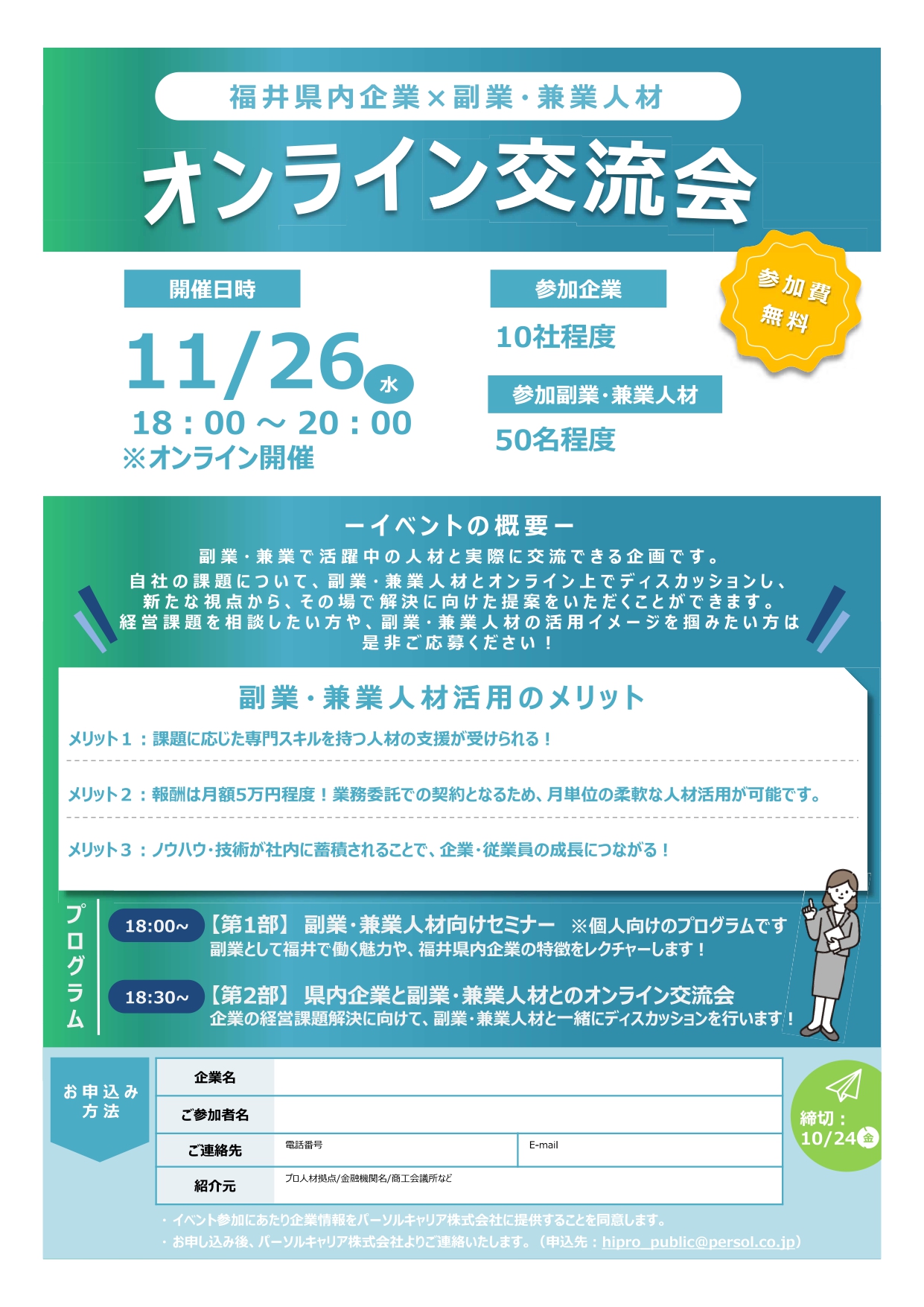 福井県では県内企業と副業・兼業で活躍中の人材とが実際に交流できるオンライン交流会を